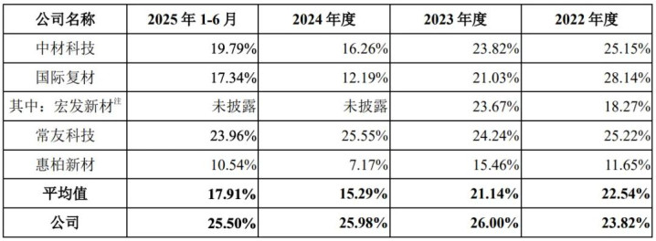 具体毛利率方面,2022年到2025年主营业务毛利率分别为23.82%、26.00%、25.98%和25.50%。